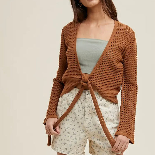 Open-Knit Self Front Tie Cardigan