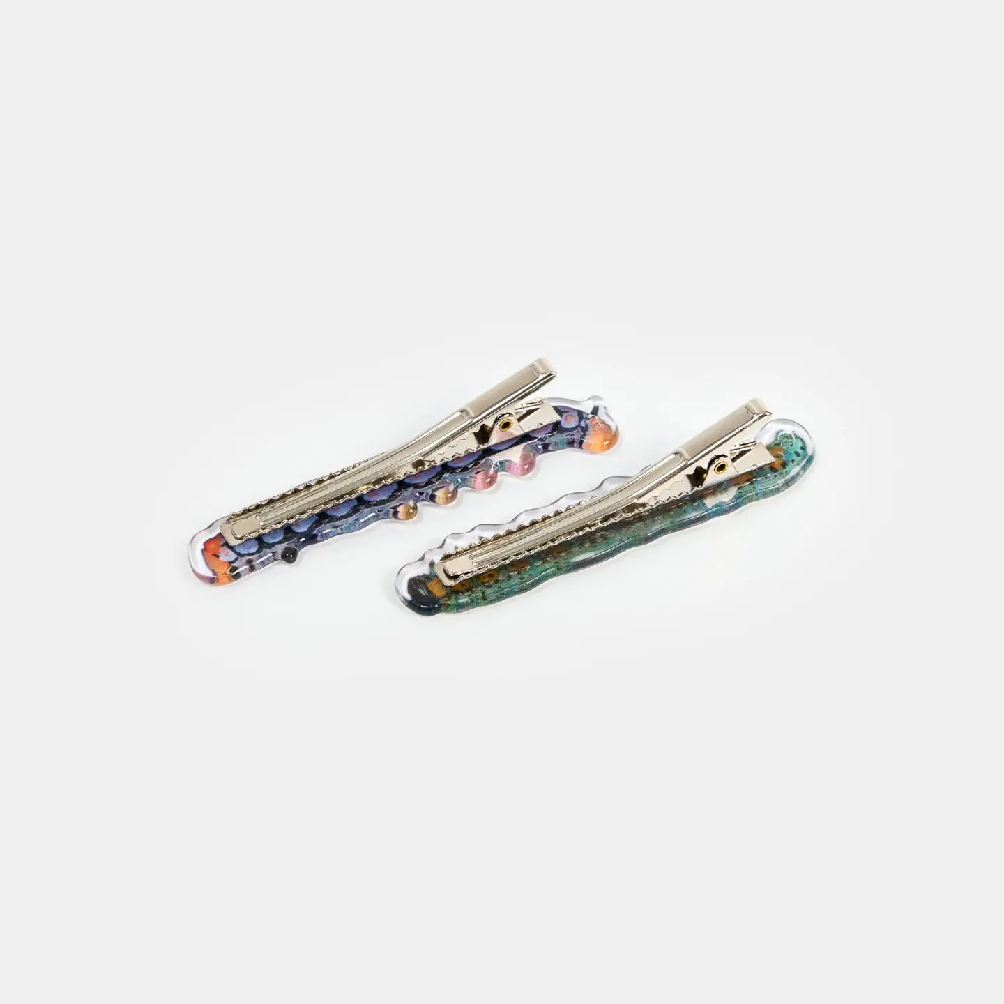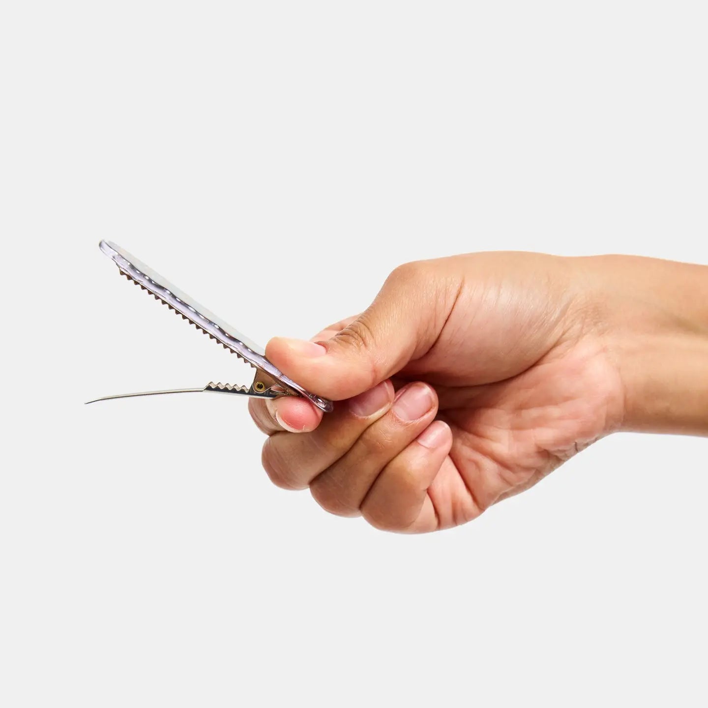 A perfect pair of alligator style clips. Small metal teeth provide a strong hold with no snag. Ideal for all hair types and lengths. Great for taming bangs and flyaways.