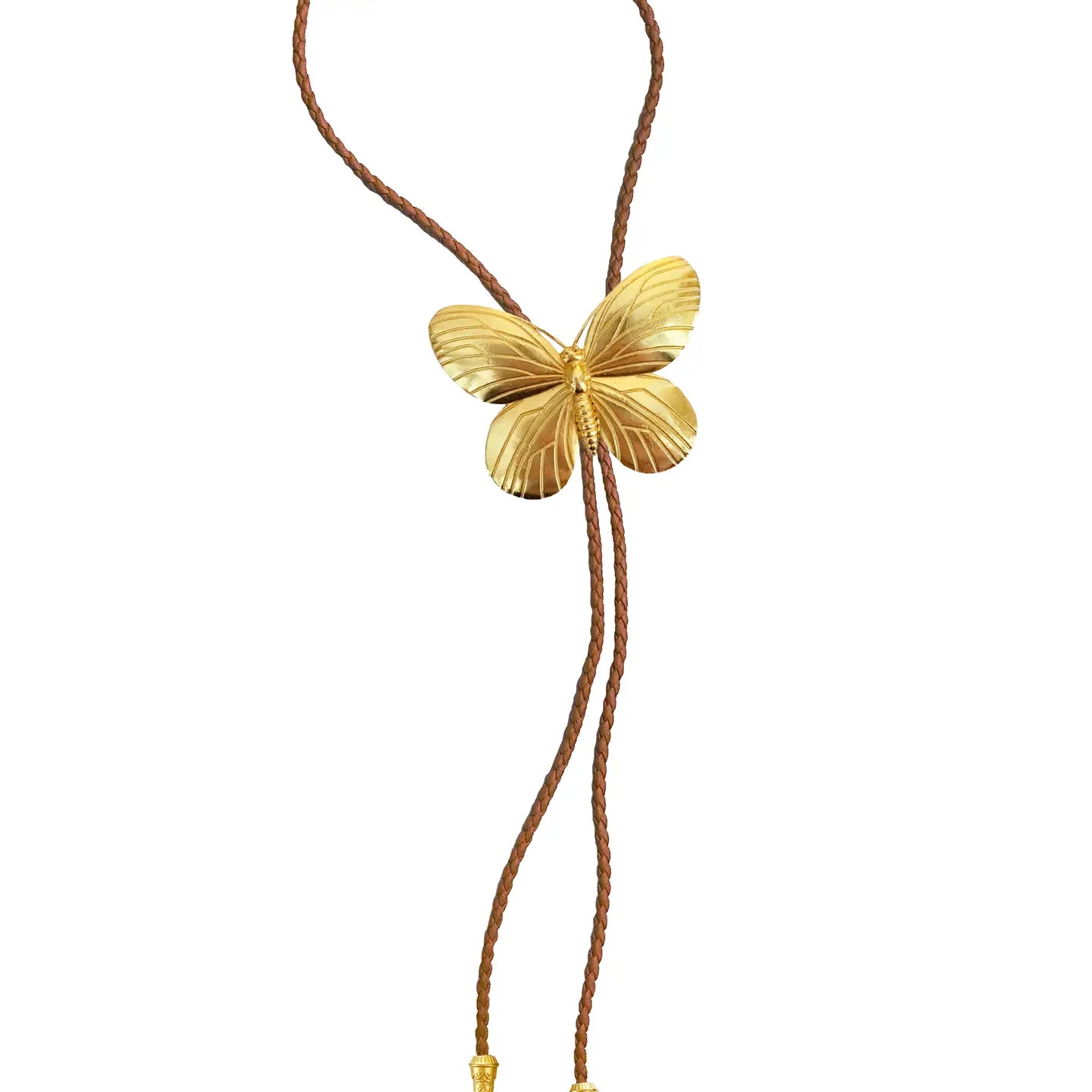 Gold Butterfly Bolo With Brown Leather