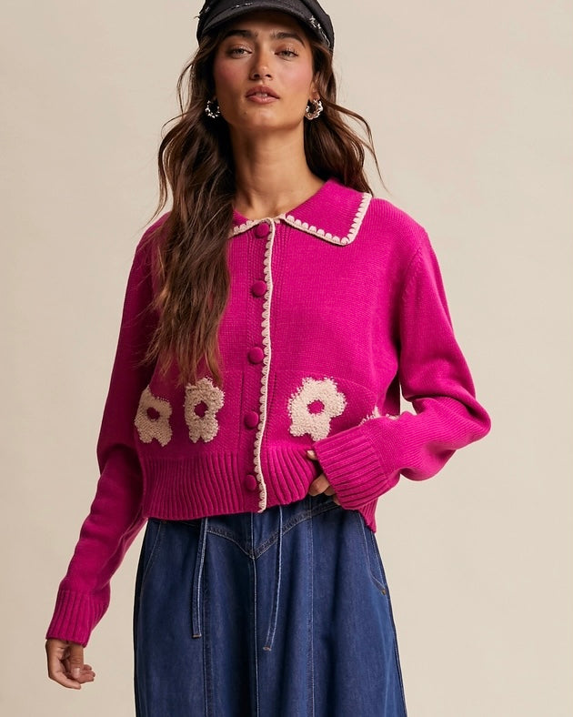Playful tufted flower motifs around the waistline add a whimsical touch
