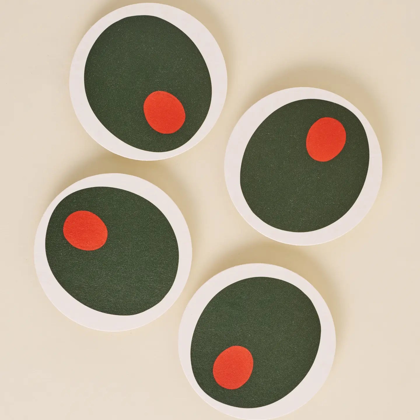 Set of four chipboard coasters, measuring 3.7 inches. Made in the USA.