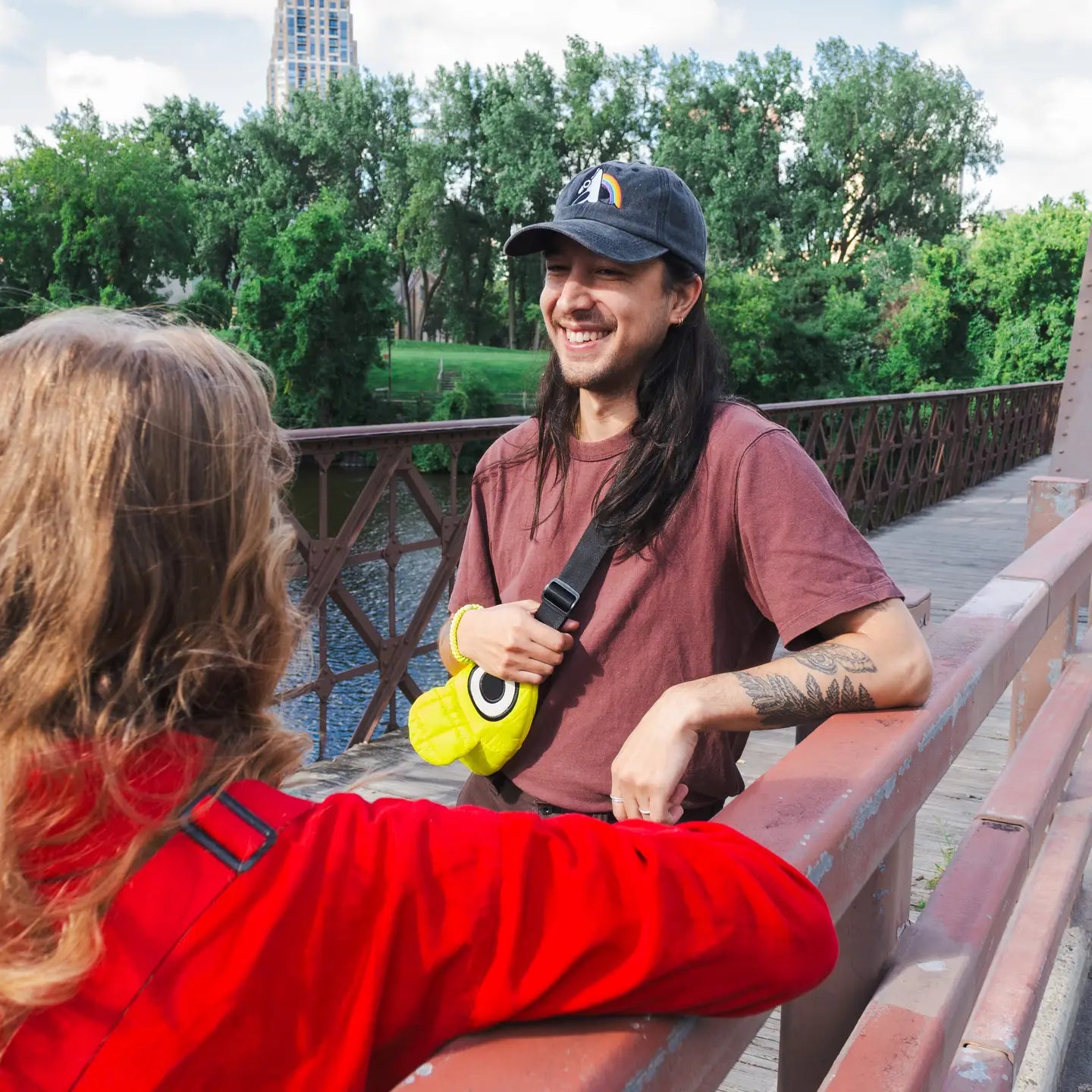 The Sporty Fish Bag has arrived! This here Fish Bag is the Sporty Yellow variety. He's 17" x 6.75" and comes with a little rubber pride flag zipper pull, D-ring and buckle matched to the adjustable 1.5" wide cotton strap, and can be adjusted to be between ~36" - 80" long (91cm x 203cm) (including the length of the bag) with the included strap-extender.